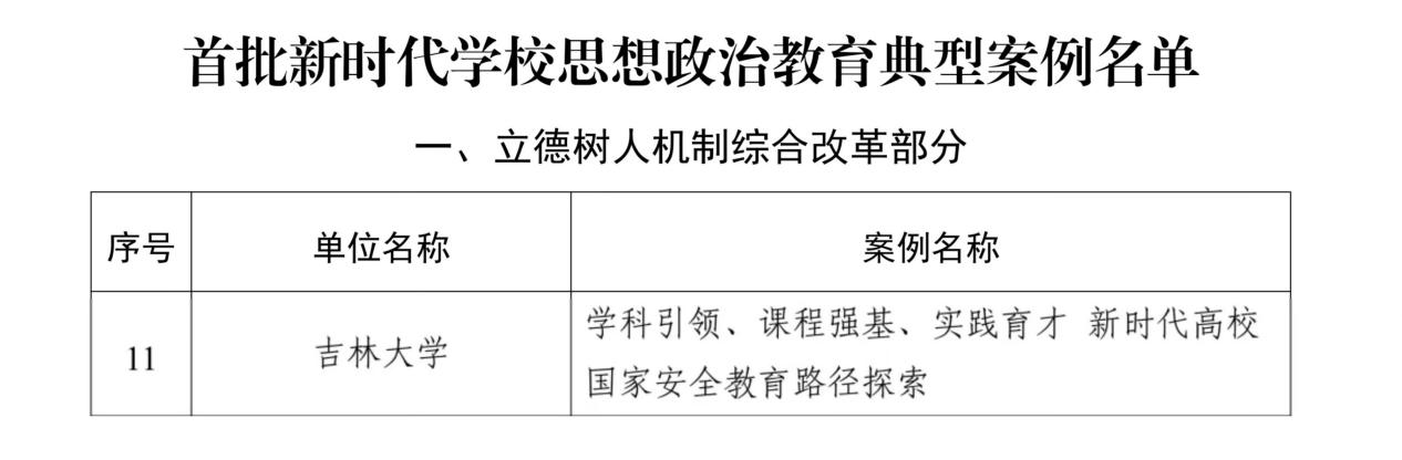 吉林大学“学科引领、课程强基、实践育才新时代高校国家安全教育路径探索”案例入选教育部首批新时代学校思想政治教育典型案例