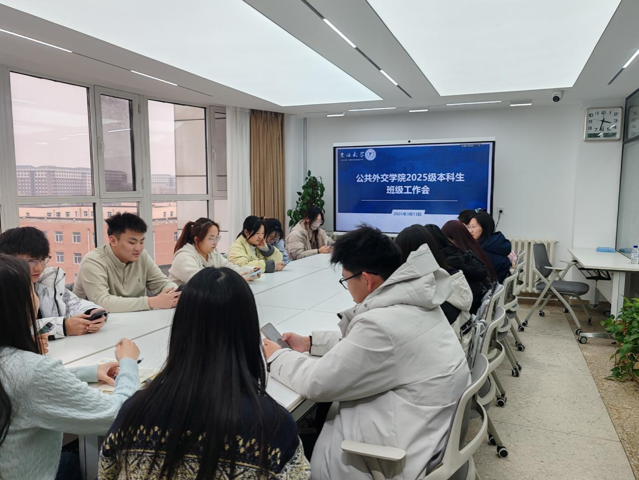 为总结过往经验,规划新学期班级工作,3月13日,公共外交学院召开2025级本科生班级工作会。会议由年级辅导员李季航老师主持,2025级班委成员参加。