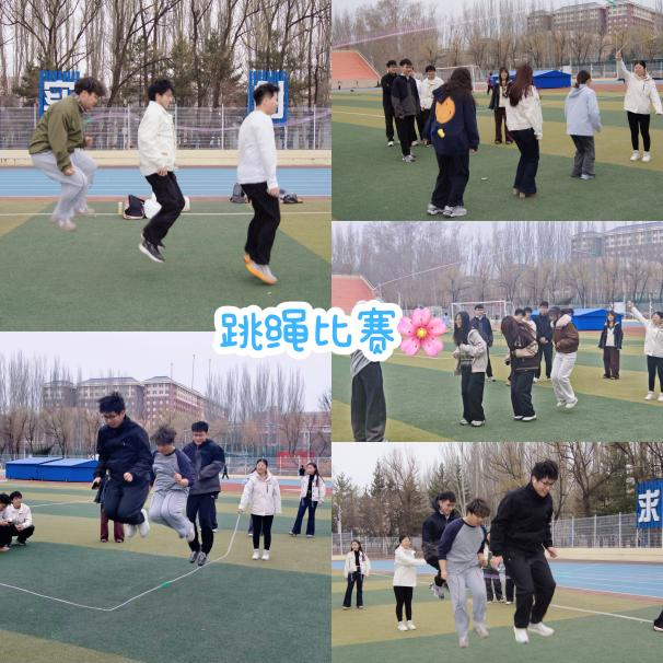 活动正式开始后,同学们迅速投入到各项趣味游戏中。在“挑西瓜”环节里,大家环坐一圈,趣味追逐,欢声笑语此起彼伏;夹“鸽子”接力赛上,众人稳步前行,彼此配合得默契十足;跳大绳时,同学们身姿轻盈、同频跃动,步调整齐划一,尽显青春活力。