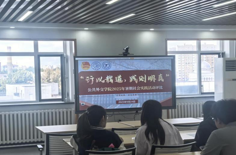 为提升社会实践活动育人成效,表彰在2025年暑期社会实践活动中表现突出的团队和基层团支部,鼓励我院学子更加积极地投身于社会实践与志愿服务活动,彰显当代青年的社会责任感与使命感,践行“世界眼光,家国情怀”的院训,公共外交学院于9月24日在吕振羽楼818多功能教室组织开展暑假社会实践总结暨评比大会。活动评审小组由学生工作办公室主任张淑艳老师,学院团委负责人李季航老师,本科生团委副书记,研究生团委副书记组成。